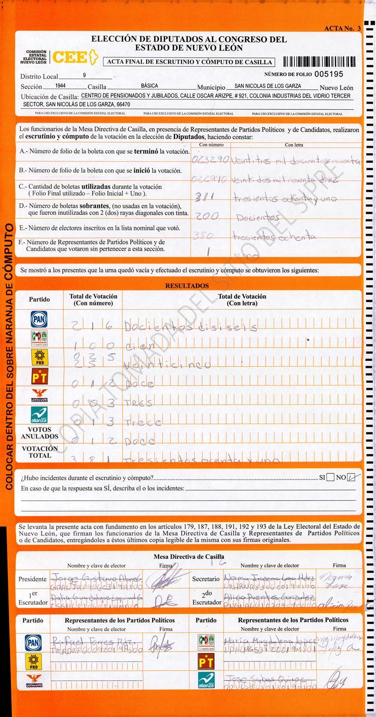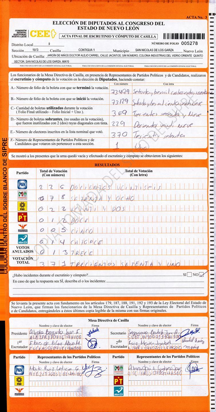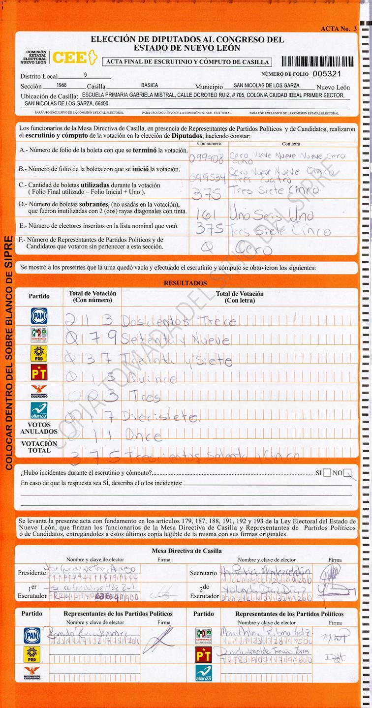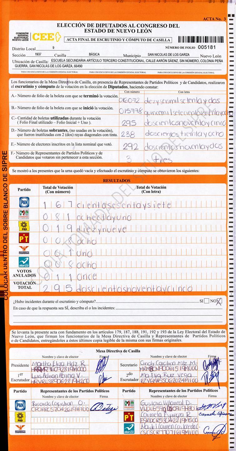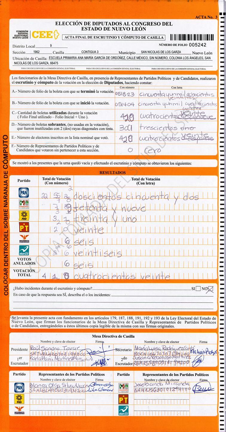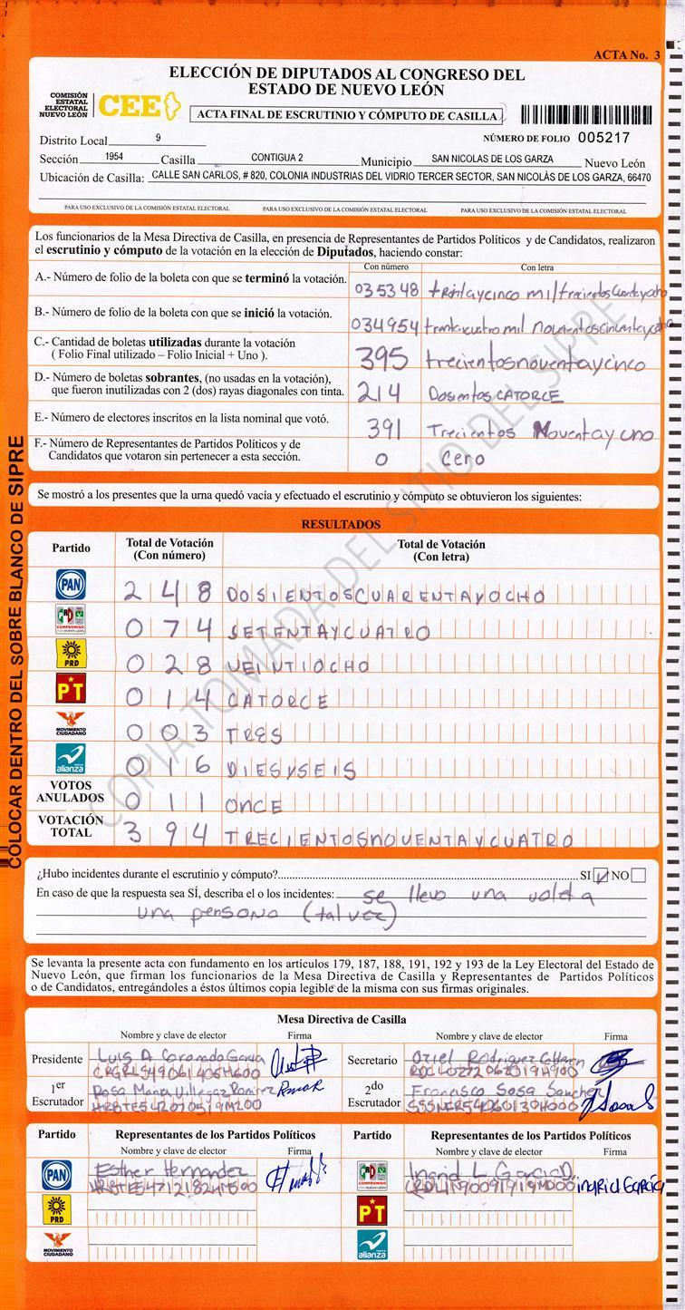 , (8) Copiado Movido , (9) Con Signos Inválidos , (10) Excede Lista Nominal , (11) Otra |