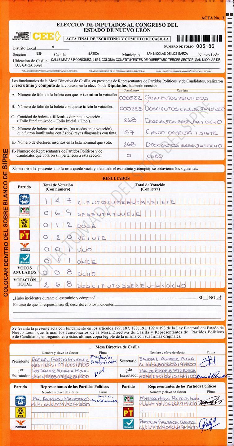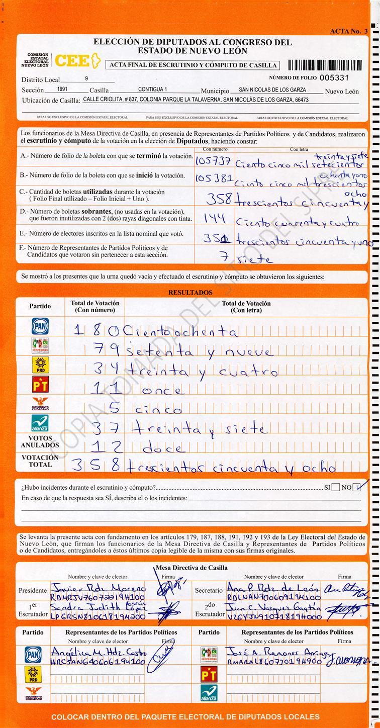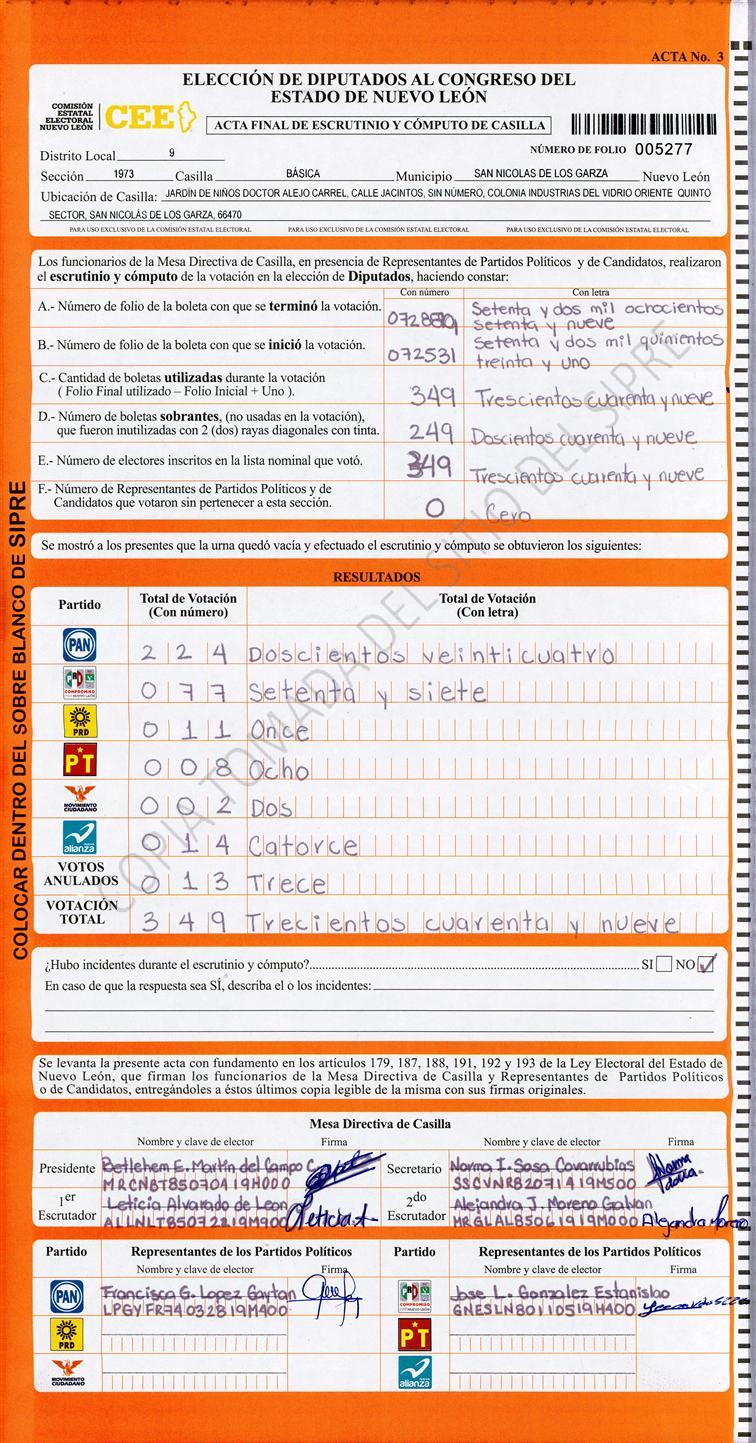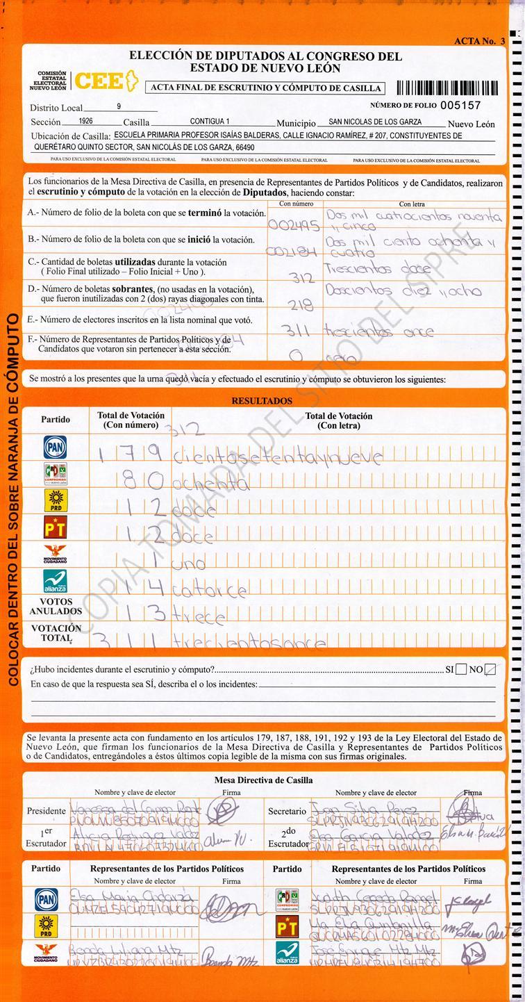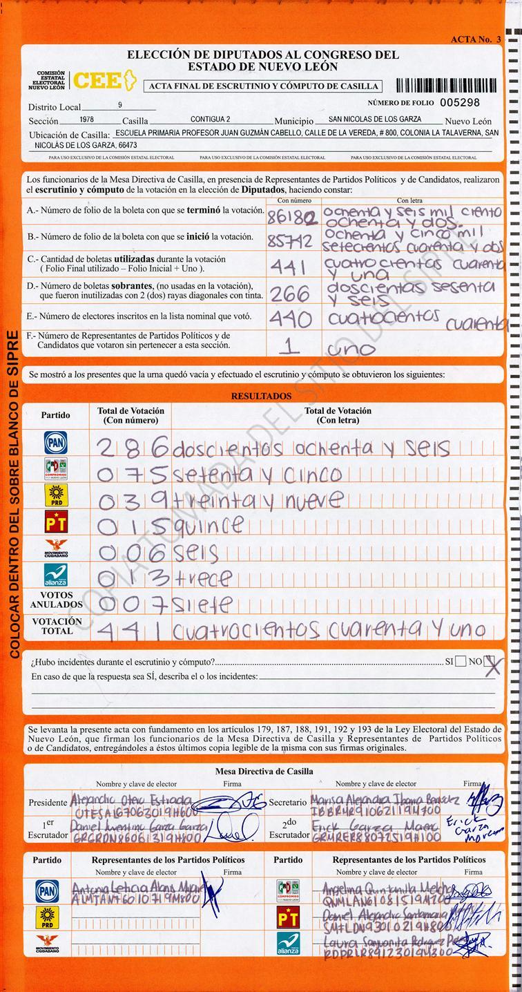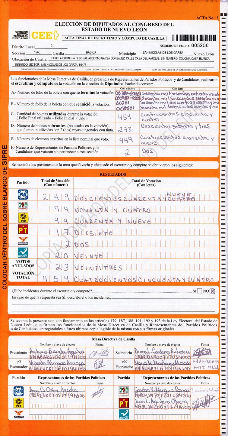 , (8) Copiado Movido , (9) Con Signos Inválidos , (10) Excede Lista Nominal , (11) Otra |
