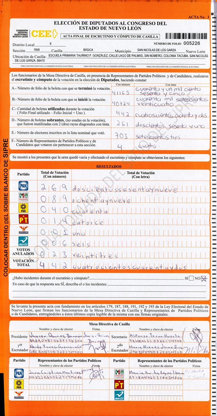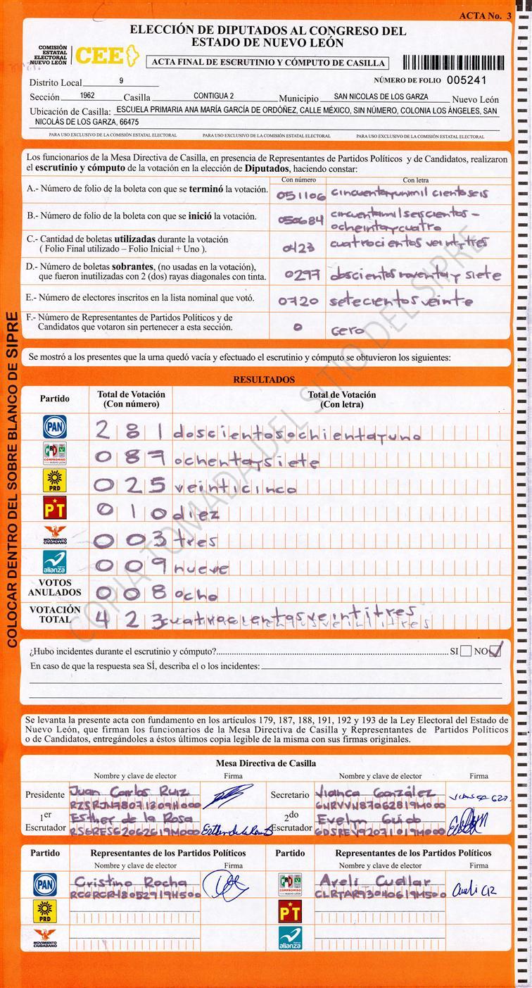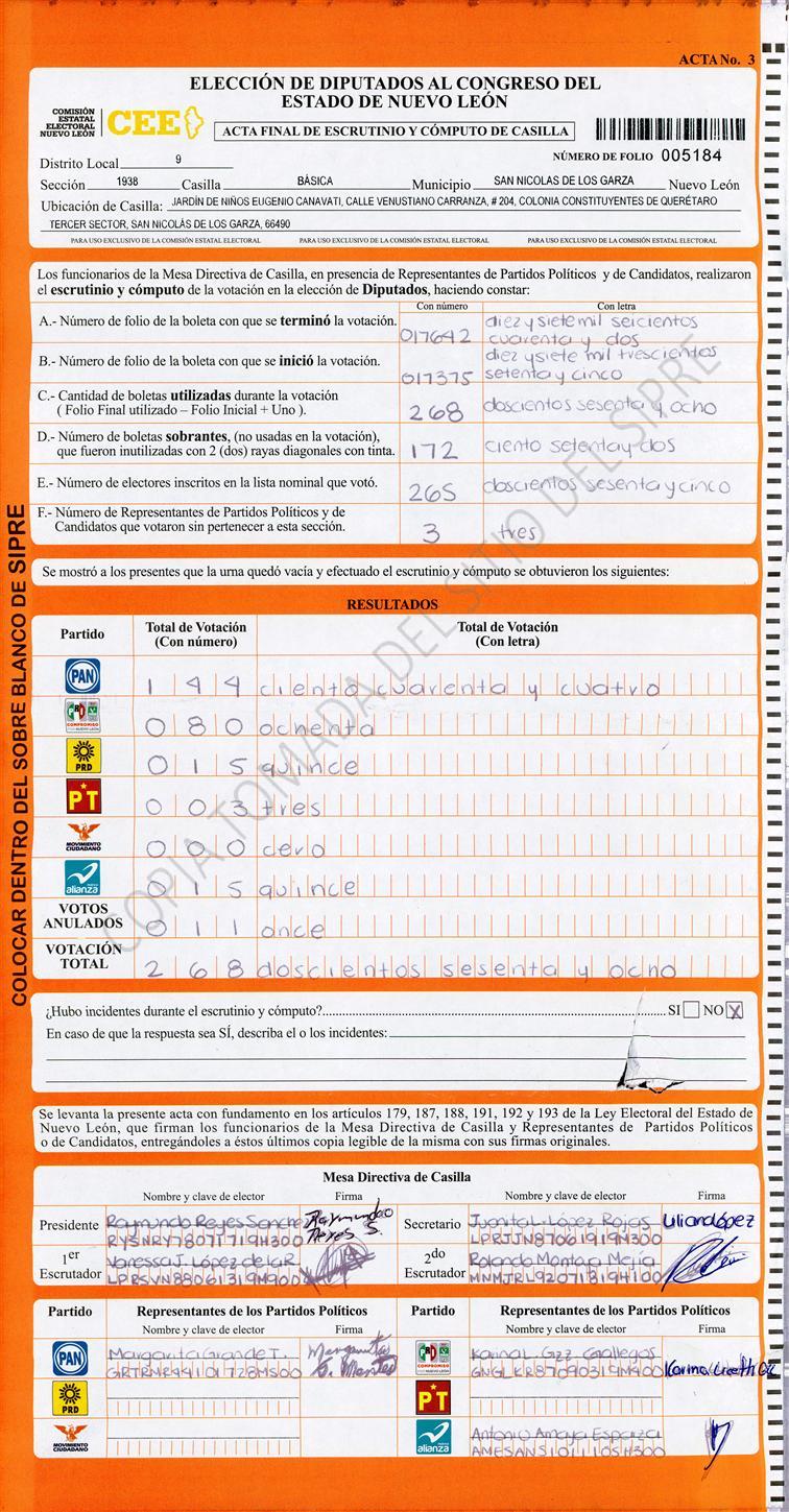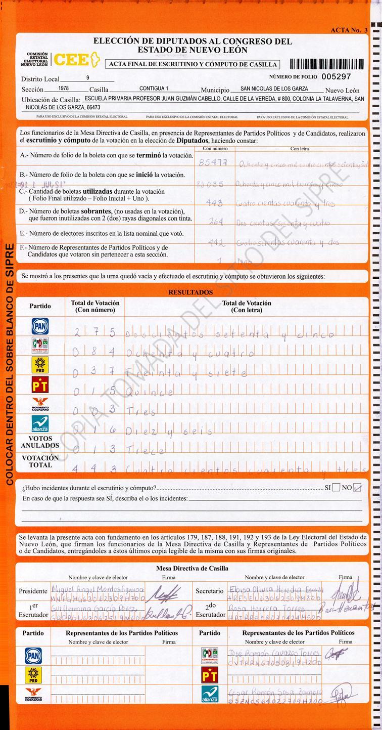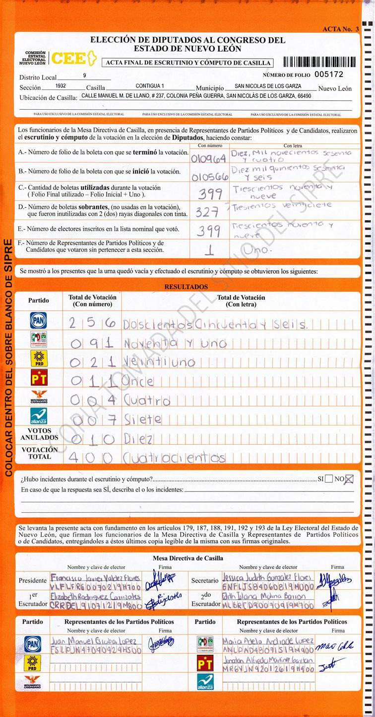 , (8) Copiado Movido , (9) Con Signos Inválidos , (10) Excede Lista Nominal , (11) Otra |