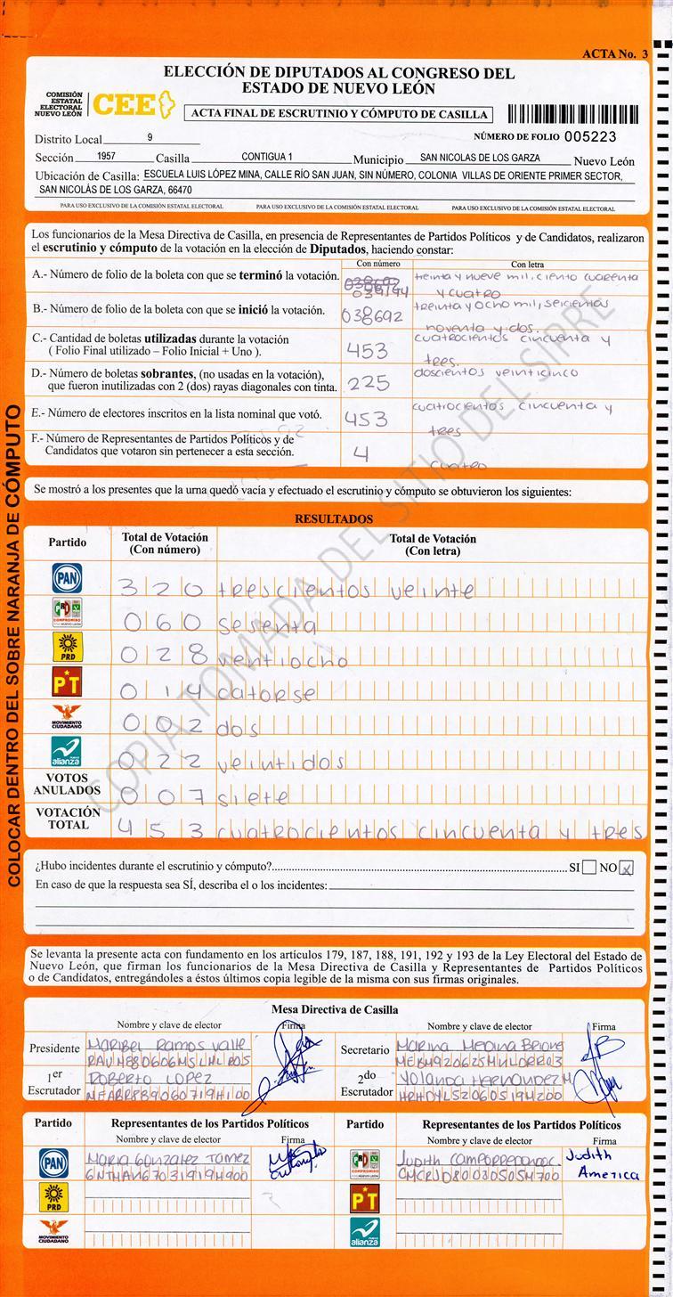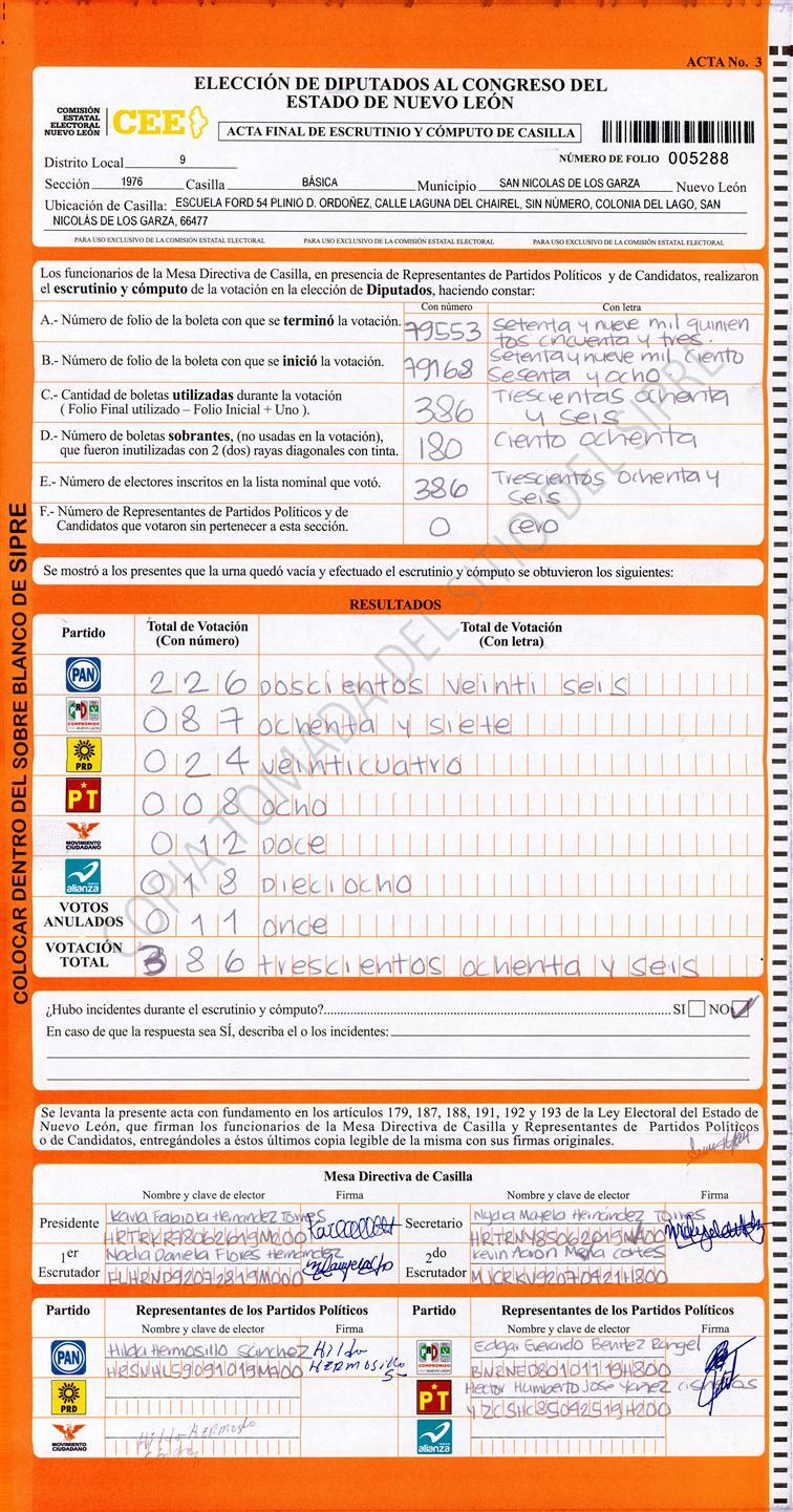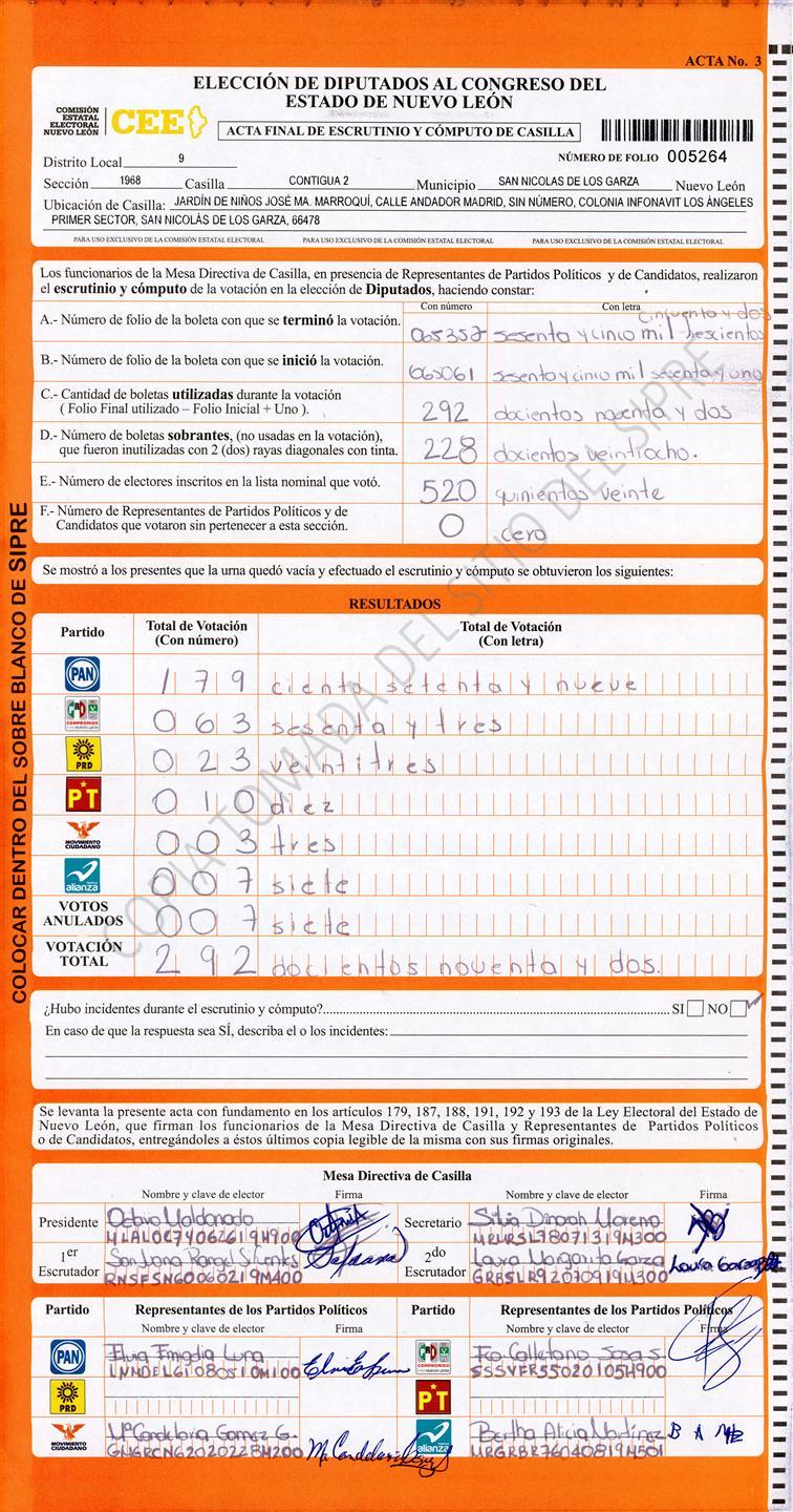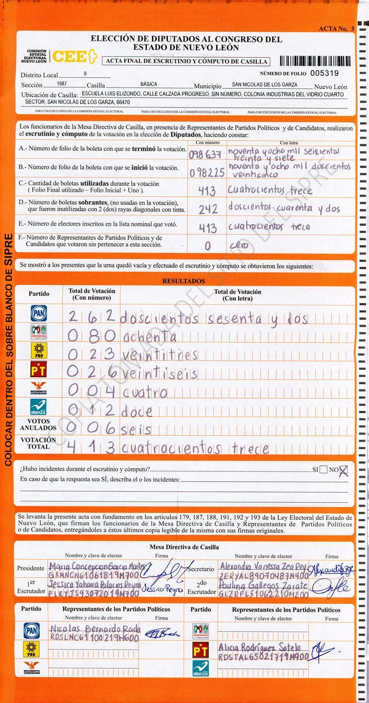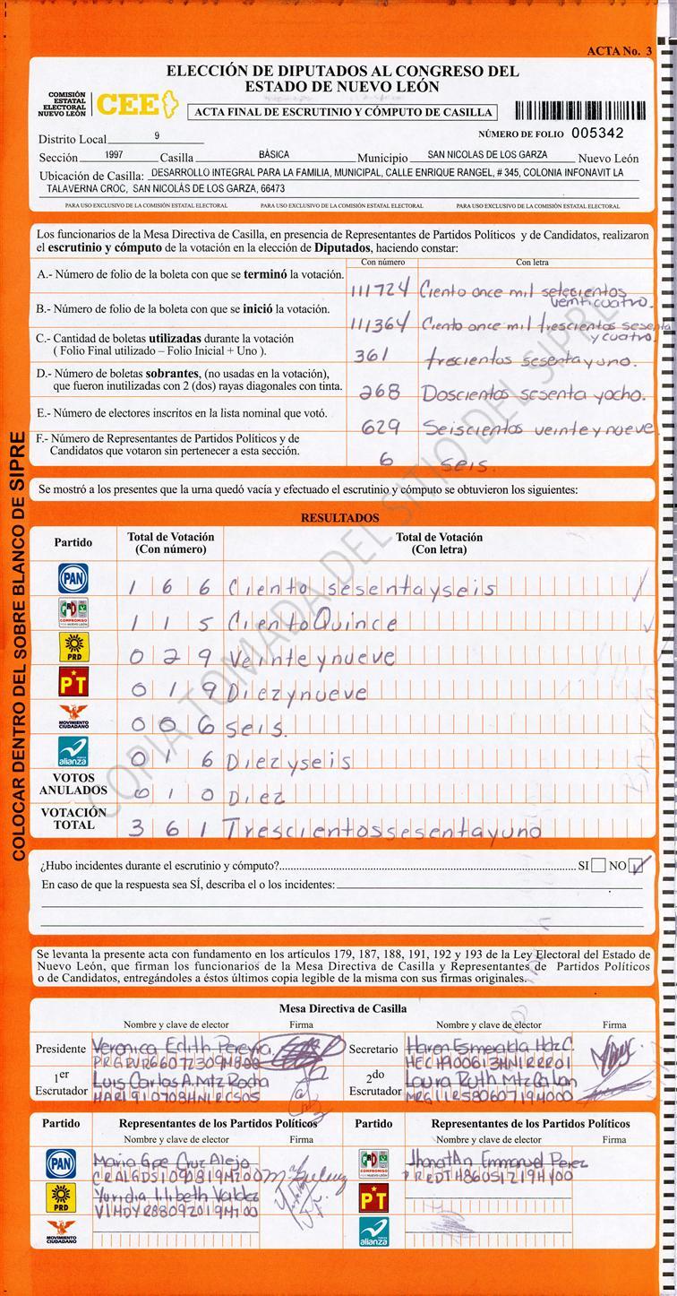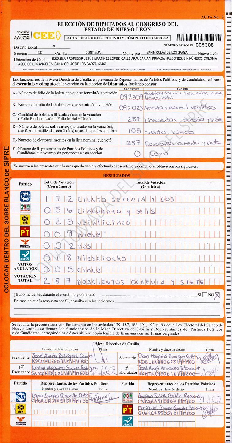 , (8) Copiado Movido , (9) Con Signos Inválidos , (10) Excede Lista Nominal , (11) Otra |